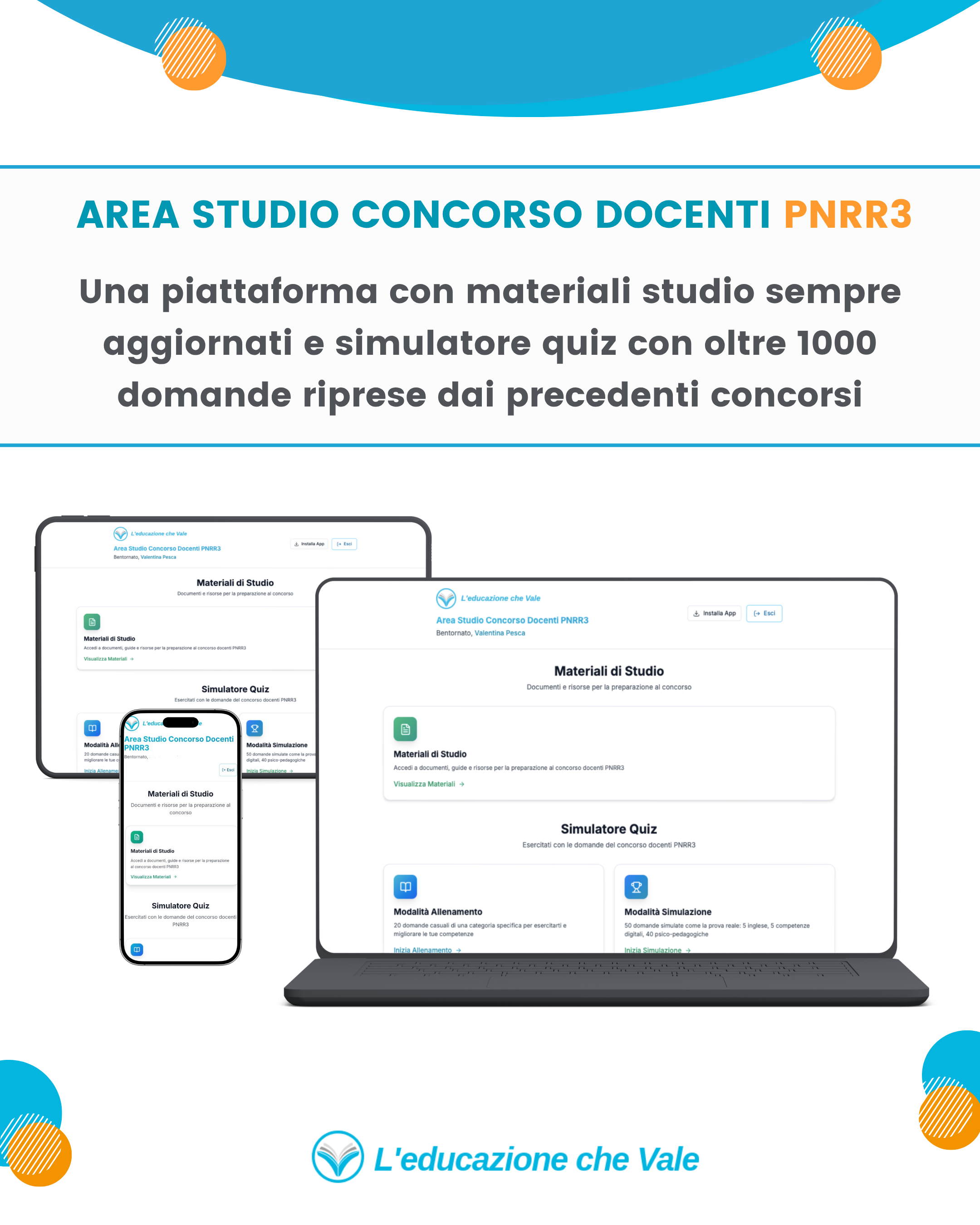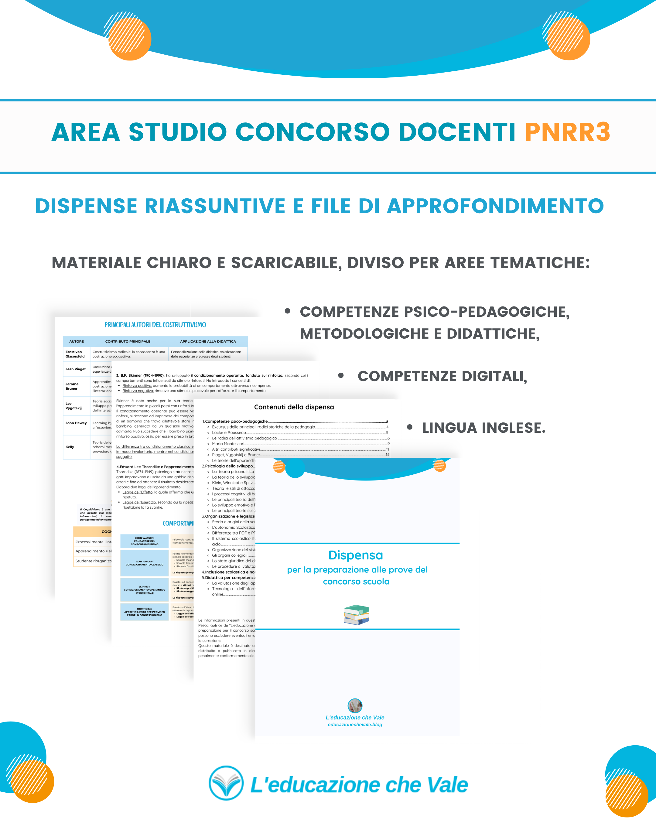 L’Area Studio Concorso PNRR3 è una piattaforma ideata da L’Educazione che Vale per supportarti nella preparazione mirata al Concorso Scuola PNRR3. All’interno troverai risorse aggiornate e strumenti pratici per affrontare con sicurezza tutte le prove concorsuali.