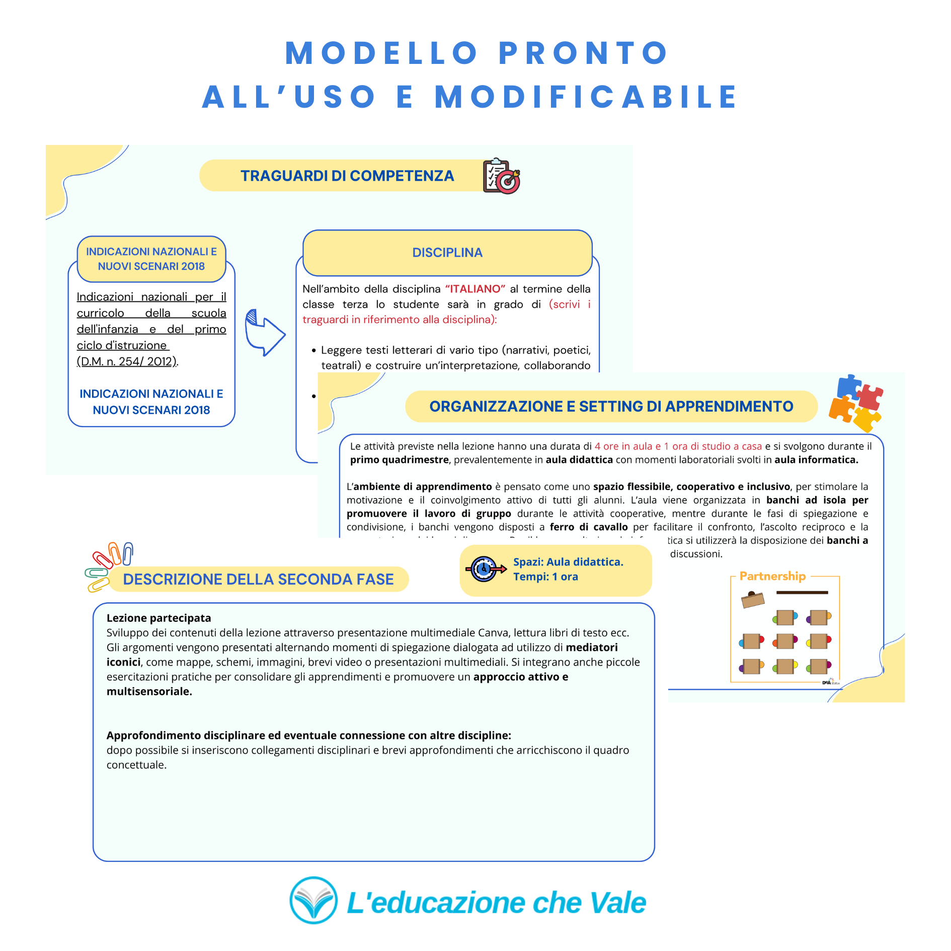 Il template è corredato di una guida che spiega la struttura della presentazione digitale con esempi concreti.